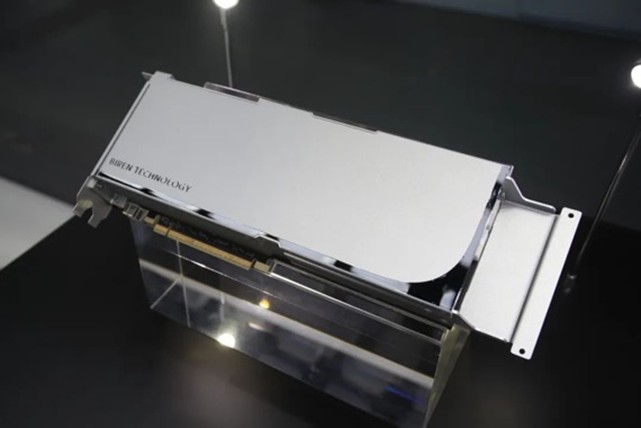 现场展示的BR100芯片,官方介绍,16位浮点算力达到1000T以上、8位定点算力达到2000T以上,单芯片峰值算力达到PFLOPS级别,达到国际厂商在售旗舰产品3倍以上,创下国内互连带宽纪录。
