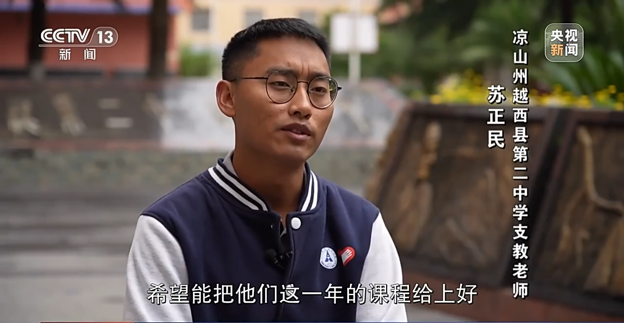 凉山州越西县第二中学支教老师 苏正民:我发现孩子们的眼神都很期待,全神贯注地在听我讲,然后对知识有这么多的渴望,我也是希望自己多下点功夫多花点时间,希望能把他们这一年的课程给上好。