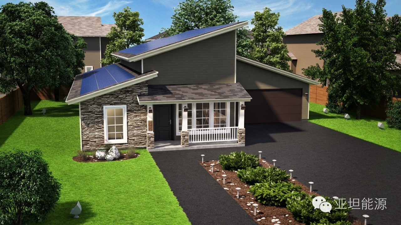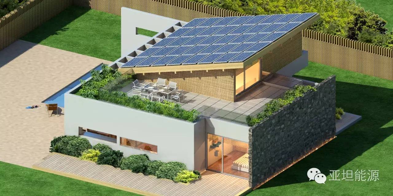 超大面积的屋顶太阳能发电系统既能给别墅室内降温,又能提供家庭所需电能,使得别墅的屋顶得到了更加有效充分的利用。