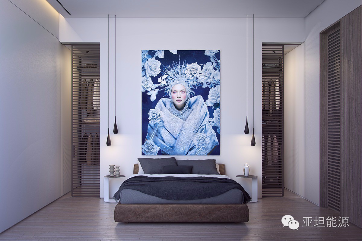 另一个房间相对简单很多,而充满蓝色色调的人像画给整个房间增添了色彩感。