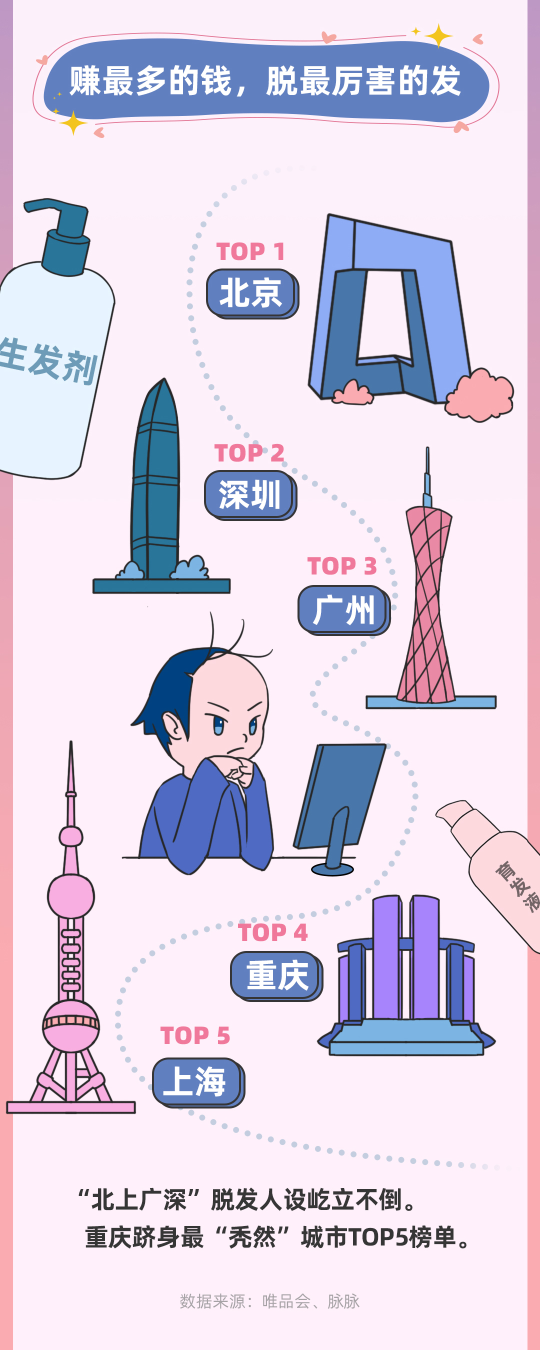美妆消费水平还与地域、收入水平密切相关。比如一线、新一线城市用户就更愿意在美妆上花钱,北京、上海、成都、深圳、广州、重庆等城市一直是美妆消费“大户”。值得一提的是,发量问题是不少都市职场人群的痛点。数据显示,在最爱买防脱发产品的城市中,除北上广深,重庆以显著性“优势”挤入前五阵列。