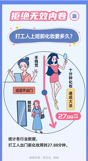 拒绝无效内卷——职场人士平均每天化妆用时27.88分