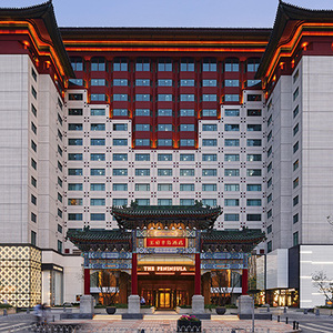 王府半岛酒店位于北京王府井附近的金鱼胡同,前身王府饭店于 1989 年开幕,是中国内地首间国际管理的合营酒店,由著名建筑师张国言打造。初开幕时,酒店同时身兼中国第一间高端购物商场,包括路易威登 (Louis Vuitton)、香奈儿 (Chanel) 和爱马仕 (Hermes) 等一线奢侈品牌的首间中国旗舰店皆落户于此。
