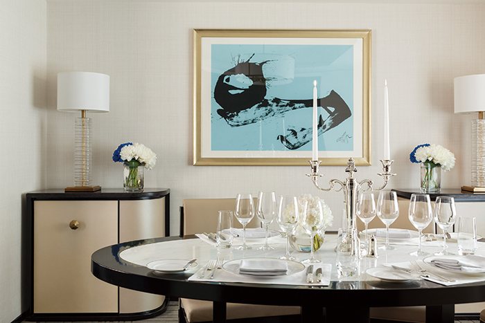 新北京套间由两间原套房合二为一而成,拥有更为宽广的起居空间和用餐区,每间套房设置私人影院,还可根据客人需要将书房变为第二间卧室,同样适合举家出游