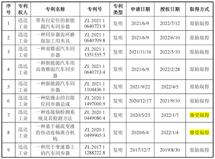 一方面表现在专利的申请上。截至招股书签署日,迅达工业共有9项发明专利、16项实用新型专利。其中8项发明专利均为2020年、2021年集中申请,几乎在2022年才获得授权,还有2项发明专利为继受取得。