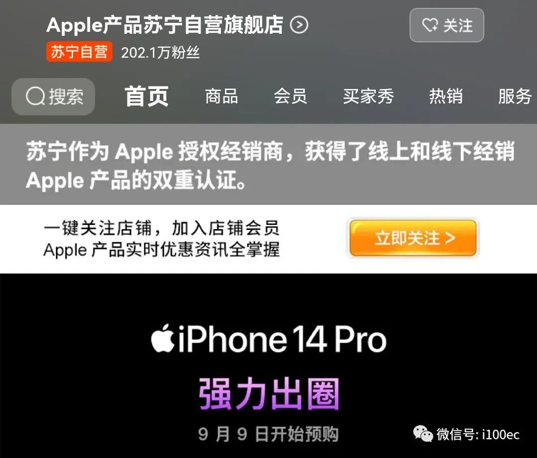 9月8日,苏宁易购也宣布将于9日晚20点开启预购活动, 用户登录苏宁易购APP搜索关键词“苹果”、“Apple”、“iPhone14”参与。此次预购期为9月9日晚20点起至15日,9月16日发货,参与预购的“果粉”便可陆续收到新款iPhone14、AirPodsPro和AppleWatch。