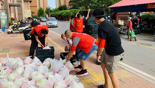 龙山街道前东葛村支部副书记刘彩传是其中一名志愿者,她表示,志愿者都是采取了无接触式配送的方式,配送时必须戴好口罩和手套,不与任何人接触,直接把菜放在干净的地方或者门岗处,保持2米的安全距离让居民自取,核对了手机后四位数字才能把菜取走。“刚开始那几天人手不够,我们每天早上七点多就开始工作了,一直忙到凌晨两三点。忙的时候实在没工夫吃饭,饿得不行就泡碗方便面。”刘彩传说,为了更完善地做好公益配送的防疫工作,志愿者们回家后还会在微信群里进行讨论。