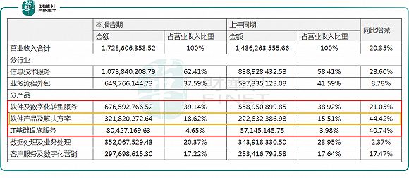 上述报告期内,京北方的信息技术服务业务实现收入10.79亿元,同比增长28.60%,占比总营收高达6成之多,全面赶超业务流程外包业务成为排头兵已有2年多时间了。