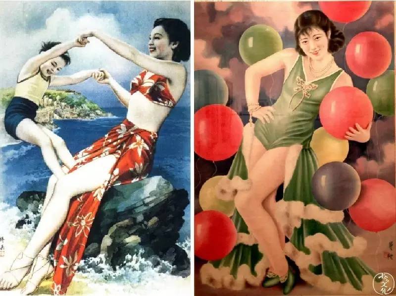到了40年代,感觉画上的摩登女郎只要“漂亮衣服+露屁股露大腿”就可以完成使命了,但百年“老上海月份牌”怎会如此浅薄。