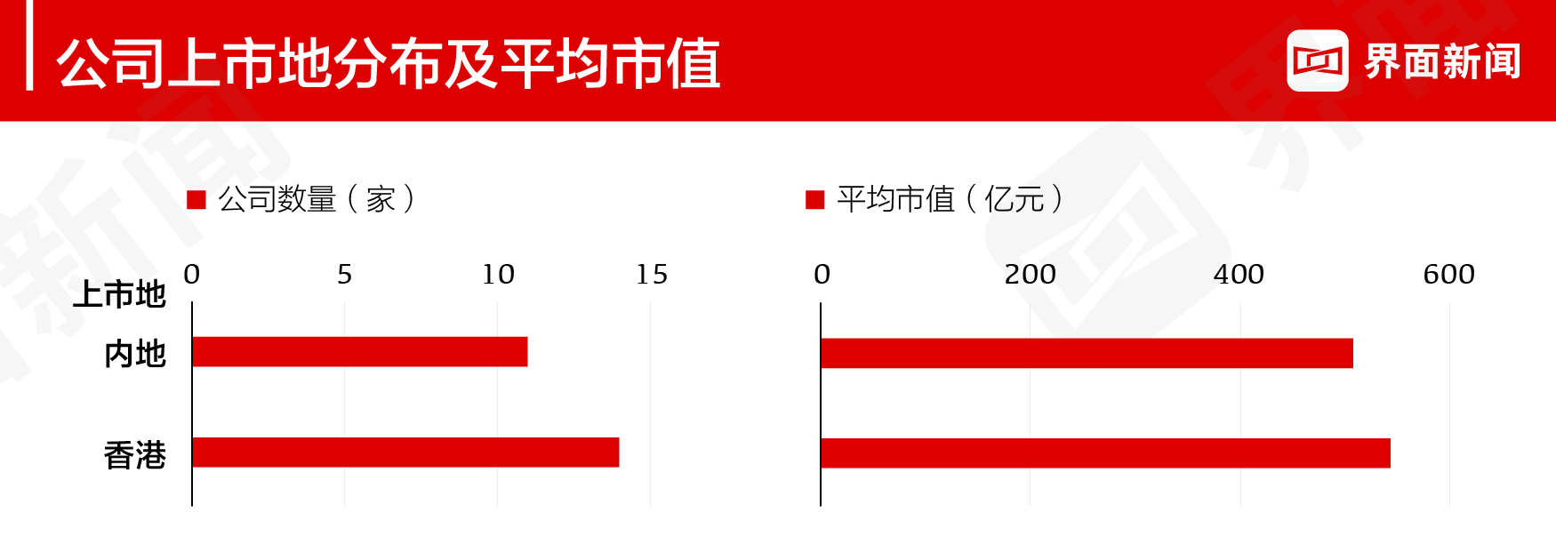 这25位CEO所管理的公司,有11家在内地上市(多地上市的,按照A股、港股、海外股的次序选择),平均市值511亿元;14家在香港上市,平均市值547亿元。