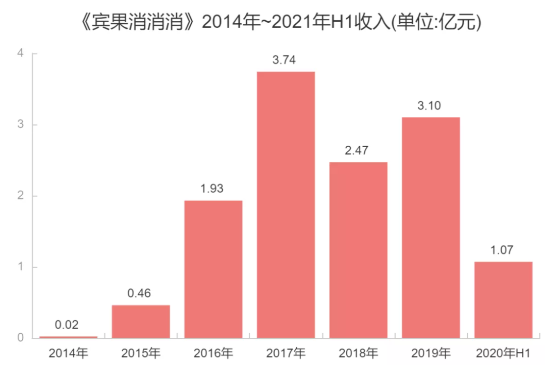 《宾果消消消》也曾在2019年提交了招股书,该游戏在2015-2019年间,分别实现4621.58万元、1.93亿元、3.74亿元、2.47亿元及3.1亿元的营收。