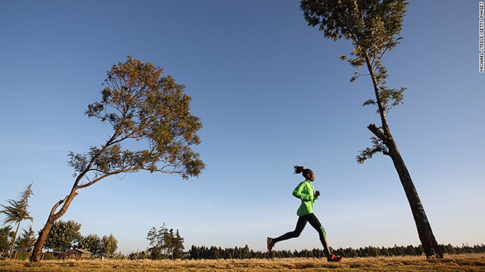 2011年伦敦马拉松冠军——肯尼亚运动员玛丽·凯特妮正在依腾训练。