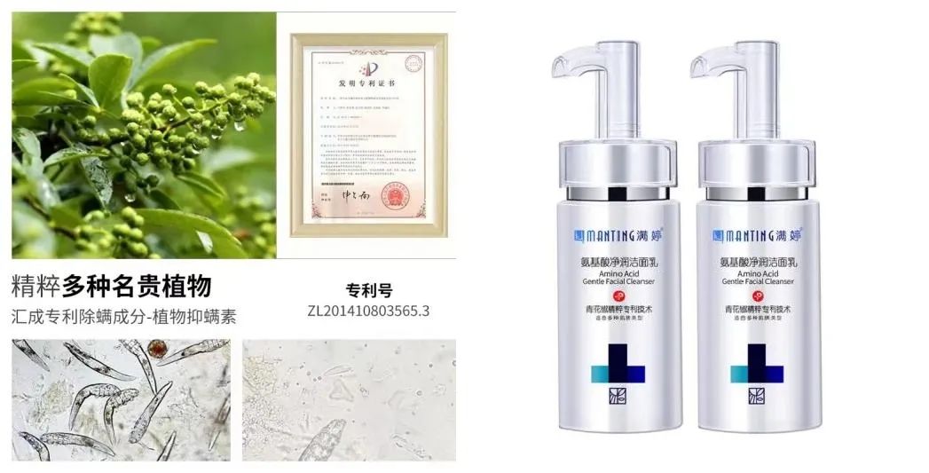 在此背景下,除螨化妆品似乎正在“消失”。青眼在国家药监局搜索发现,目前“除螨”化妆品(普通)备案为49个,其中生效的仅4个。曾经主打除螨的满婷,如今除了皂类,产品名字都不再包含“除螨”,比如宣称添加了专利除螨成分的产品,实际名称为“满婷氨基酸净润洁面乳”。