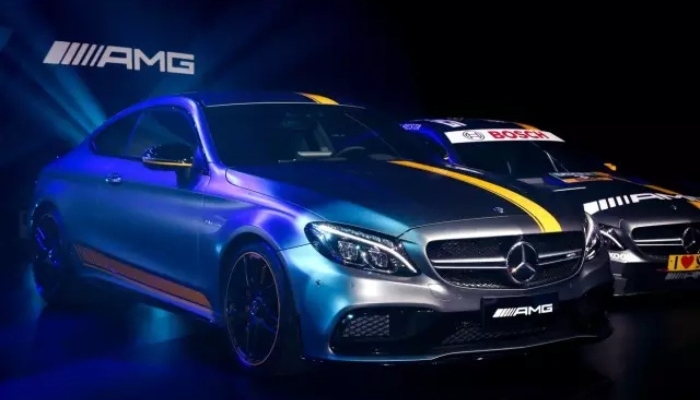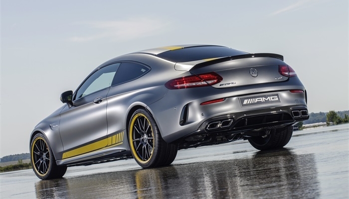 2. AMG C63轿跑限量版和一个月前同样在上海赛车场发布的C63轿跑相比,DTM赛车元素更突出,采用名为Designo的月光石哑光灰色车漆与明黄色涂装饰条进行搭配,外扩式前后轮拱和增大的轮距使其外观肌肉感十足,更具识别度。