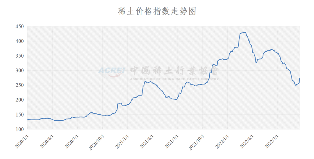 据中国稀土行业协会,9月21日,稀土价格指数报269.0,较前一日下跌4.8点。