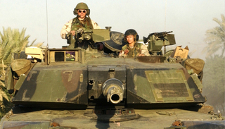 当M1终于在1991年投身战场的时候,它高效的火炮威力和在伊拉克坦克炮火下表现出的微小损伤令坦克兵印象深刻。波斯湾战争中没有一辆M1被伊拉克坦克击毁。↓