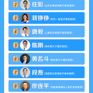 此外,7月榜单同样上榜的南方医科大学南方医院罗勇、杭州艺星医疗美容医院李俊霞不在本期榜单之列。