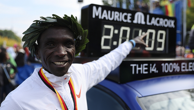 巧合的是,就在四年前的柏林,基普乔格创造了2小时01分39秒的世界纪录,这一次,人类极限,又被他亲自提升30秒。