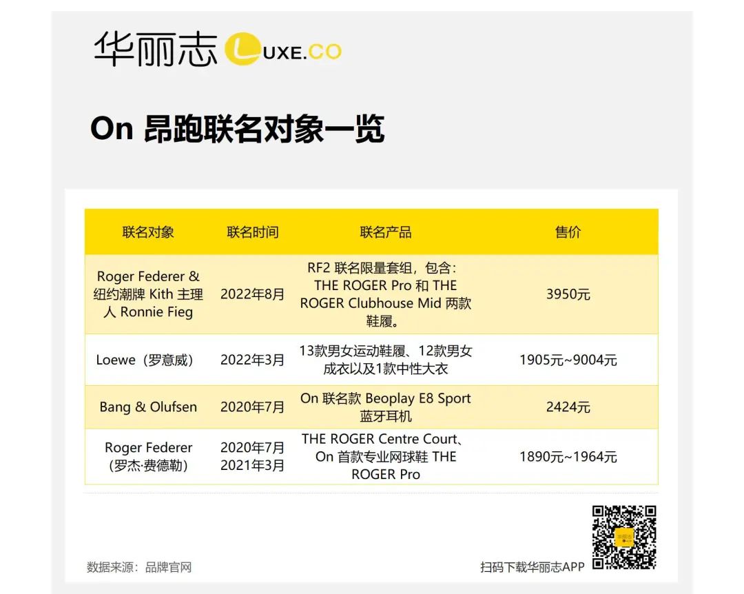 在上文图表中,不管是瑞士网球天王费德勒,还是西班牙奢侈品牌 Loewe 的创意总监 Jonathan Anderson,他们都有一个共同点:都因喜爱 On 的产品慕名而来。