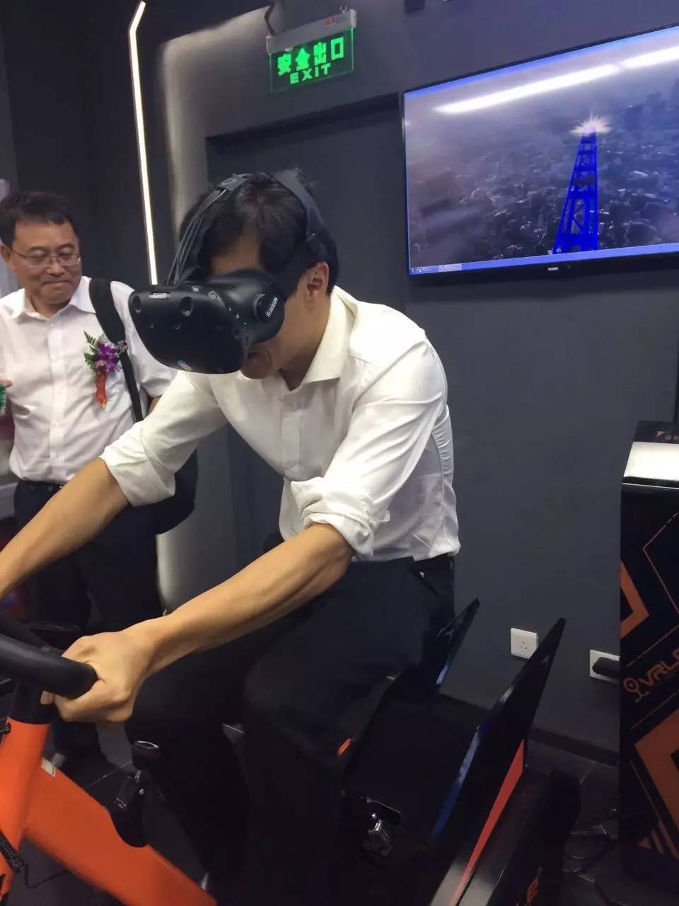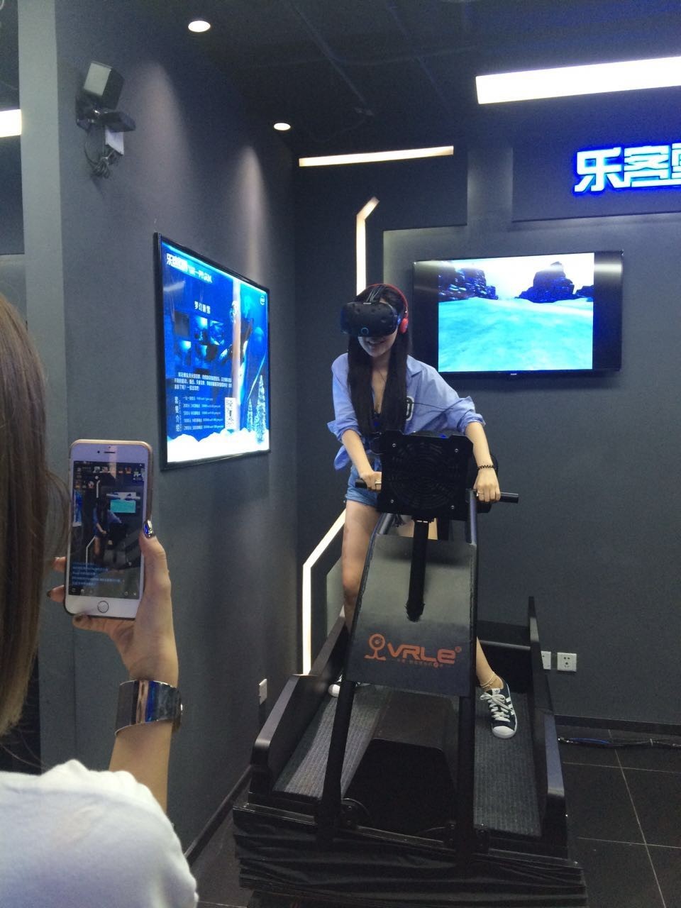 “太刺激了,我全身冒汗了。”在位于北京新中关购物中心的乐动世界VR Park, 一名三十岁左右的玩家一边踩动一台类似动感单车的设备,一边大呼小叫。他头戴VR设备,手臂紧绷,玩着一款成为“太空骑行”的游戏,汗珠从额头滑下,背后的屏幕显示,他正骑行在一条横架在高空中的索道上。