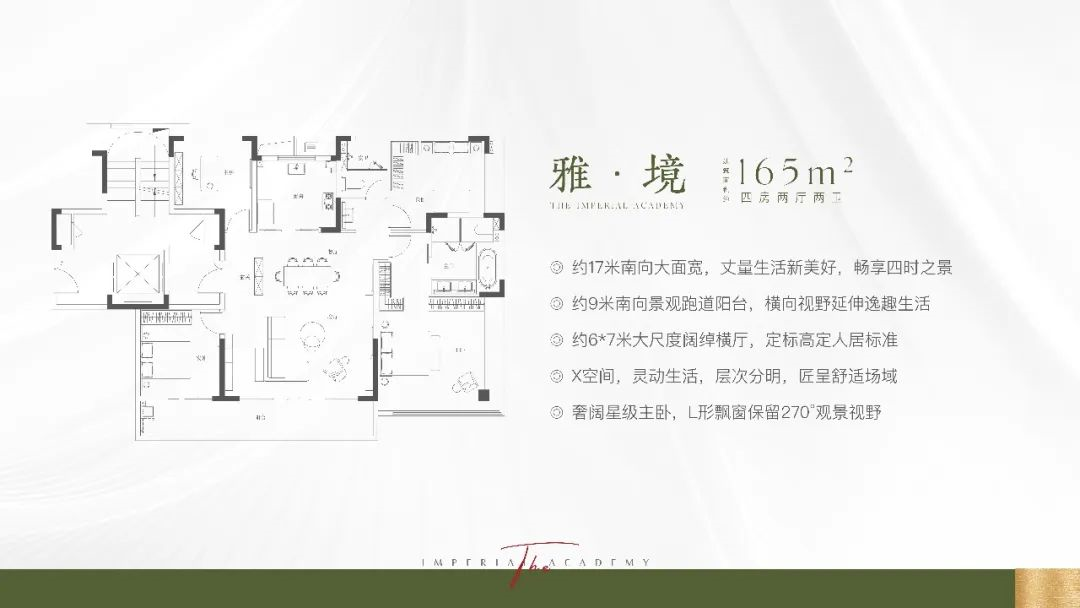 165㎡四房两卫:该户型位于1号楼中间户、6号楼和9号楼。
