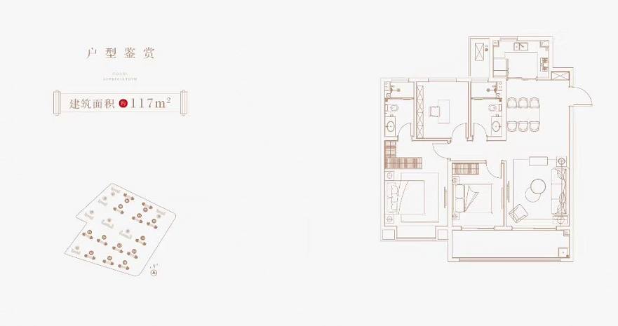 项目整体三房起步,打造建筑面积约97㎡三房两厅一卫和117㎡三房两厅两卫产品。