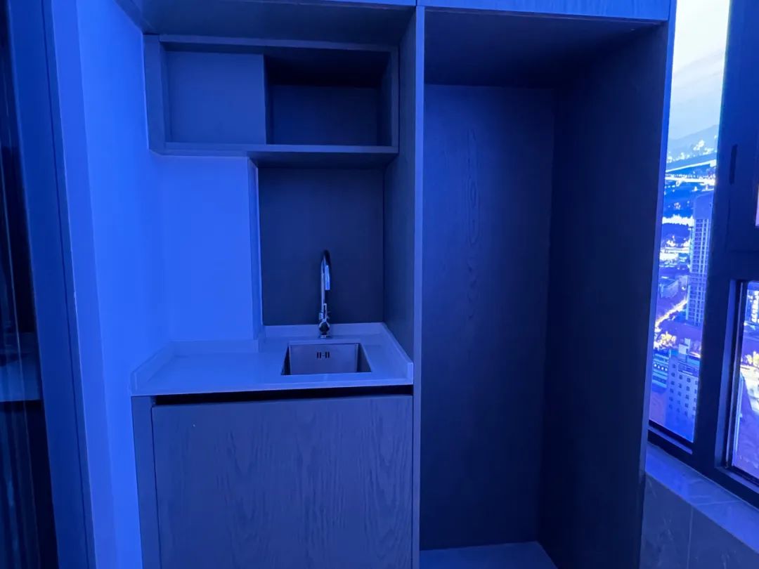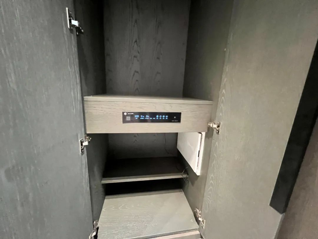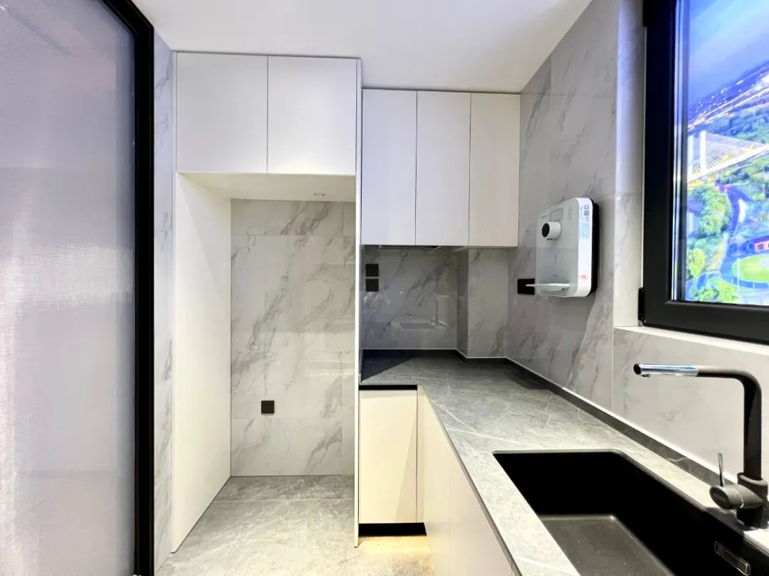 不仅如此,厨房不仅预留了双开门冰箱的位置,还安装了一个直饮水管线机,可以三秒出热水,这在样板间中并不常见!