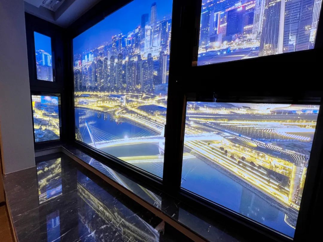 与此同时,项目还打造了一个视线通廊,把江河视野与社区进行了有效的融合,站在屋内,推窗即是江河视野,万千风景尽收于怀。