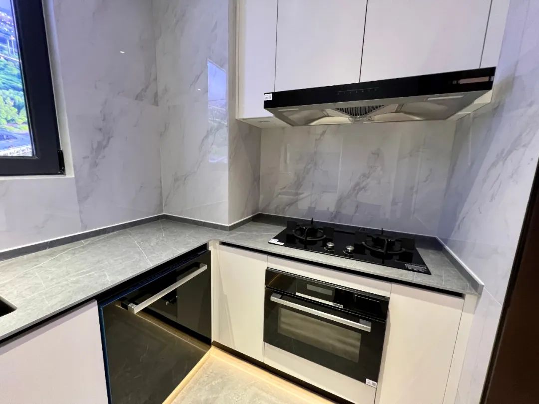 在厨房电器上,项目采用的均为一线大牌。灶具、油烟机、洗碗机、蒸烤一体机均使用博世品牌,水槽、抽拉水龙头等五金件均采用弗兰卡品牌,还有飞利浦凉霸、唯斯特姆垃圾处理器等,这些均在交付标准内。