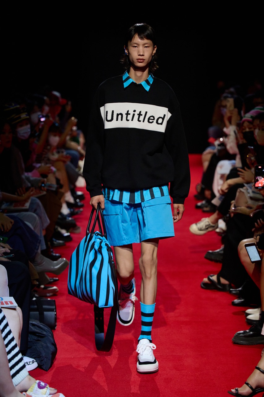 在彩色的巨型条幅下,Short Sentence带着对多种社会议题的深度思考缓步而来。Short Sentence 2023春夏系列“Untitled”(无题)灵感来自于女性艺术家Barbara Kruger。“无题”代表着事物不受名字带来的意义限定。