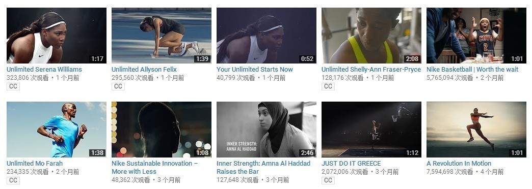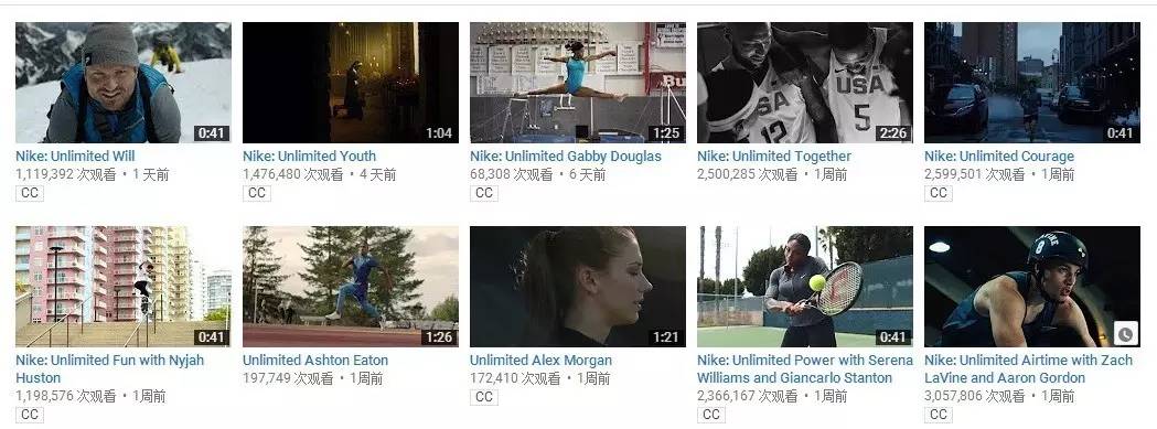 所以耐克里约奥运的传播主题就是“超越Just do it ,挑战Unlimited”,除了上面这支主广告片,从6月7号到昨天奥运闭幕,耐克共计释放了23支Unlimited主题广告(据TOP君不完全统计)。奥运会期间,更是以平均两天一支的速度在社交网站上发布新广告,每支广告的点击量都在百万级别,有几支还在千万的级别,妥妥的视频营销轰炸机。