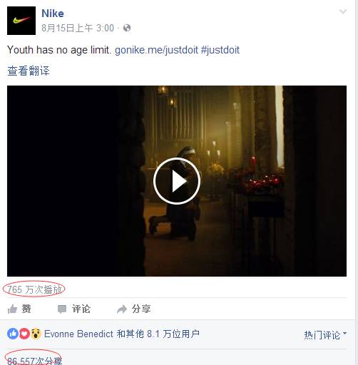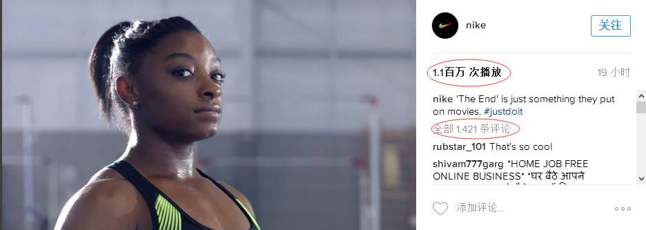 下面是Facebook和Instagram的耐克官方页面,播放量和转发数、评论数都不少: