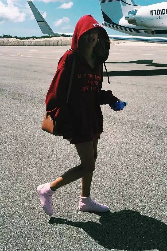 Hailey Baldwin也在穿Vetements大卫衣,配了粉色的Vans,好少女。