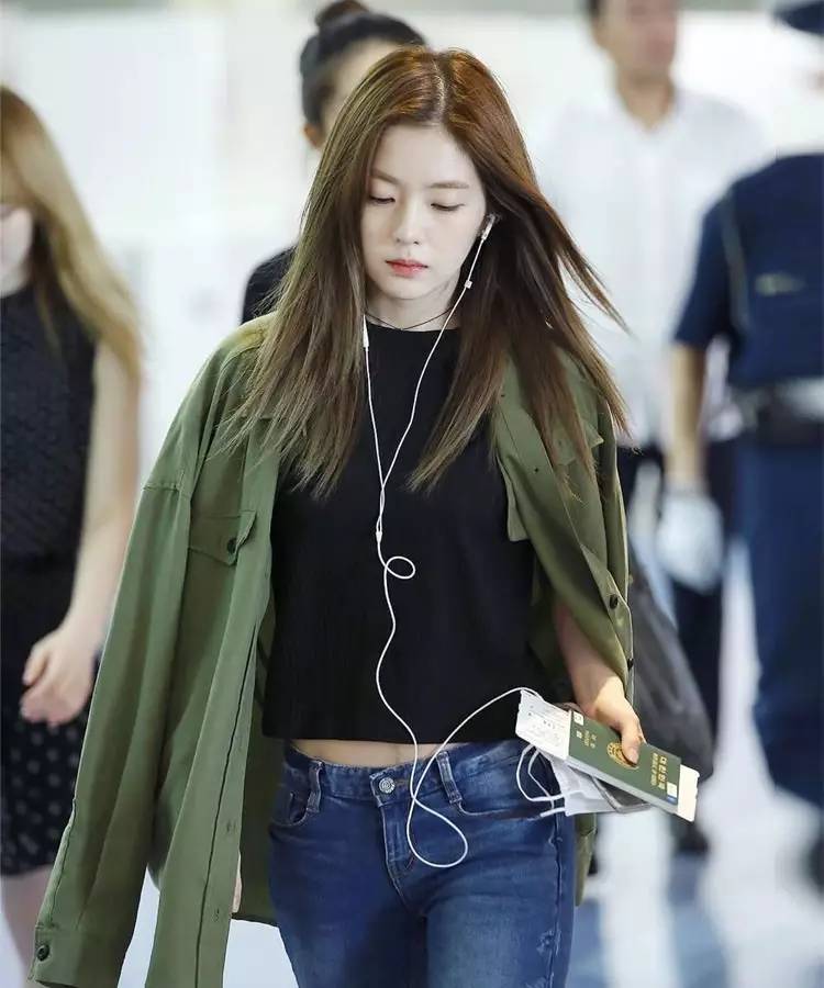 Red Velvet的颜值担当Irene穿着Rayetog的军绿色衬衫,走路带风,帅气养眼。
