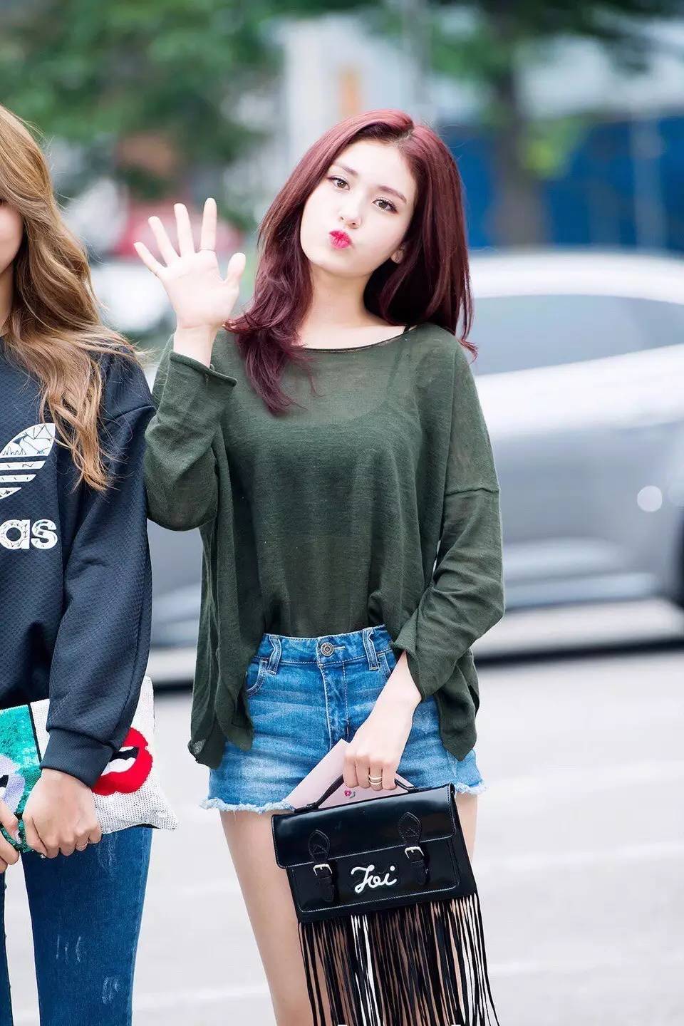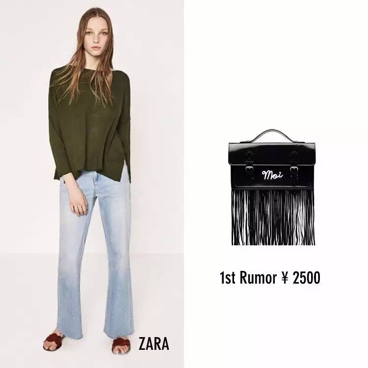 I.O.I的Som去音乐银行的路上,上衣Zara,不过我一眼就看到她手上提的黑色流苏包,来自品牌1st rumor。ZARA军绿色线衫,配红发有点和谐。