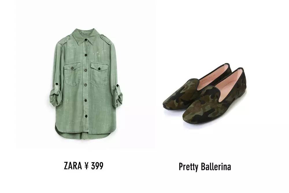 Olivia最近也在穿ZARA,一套各种深浅的军绿色搭配,很考功力。