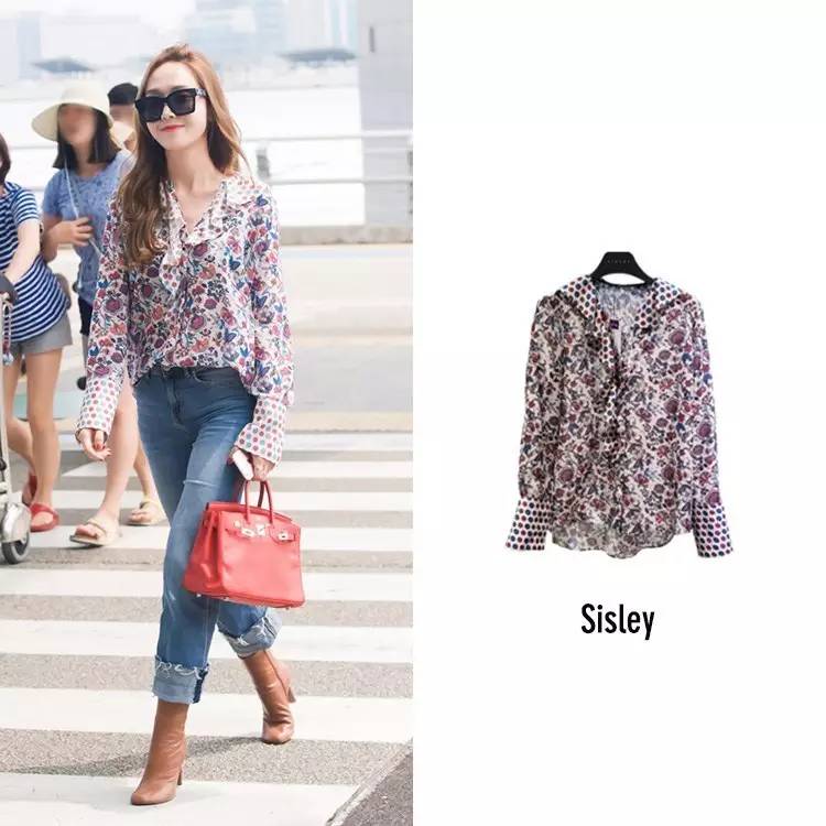 Jessica的花花大袖子衬衫,配九分裤也很美。