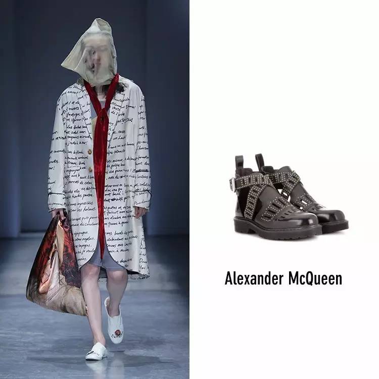 这件西装款式的衬衫裙是国内设计师品牌Black Bridge家的,说它鬼马,因为他们家走秀也不怎么好好走。。铆钉镂空短靴来自Alexander McQueen,小花老师最近穿过好几次。