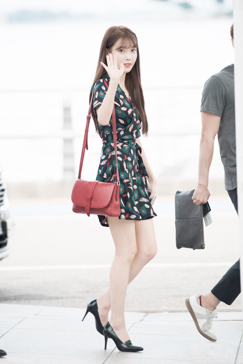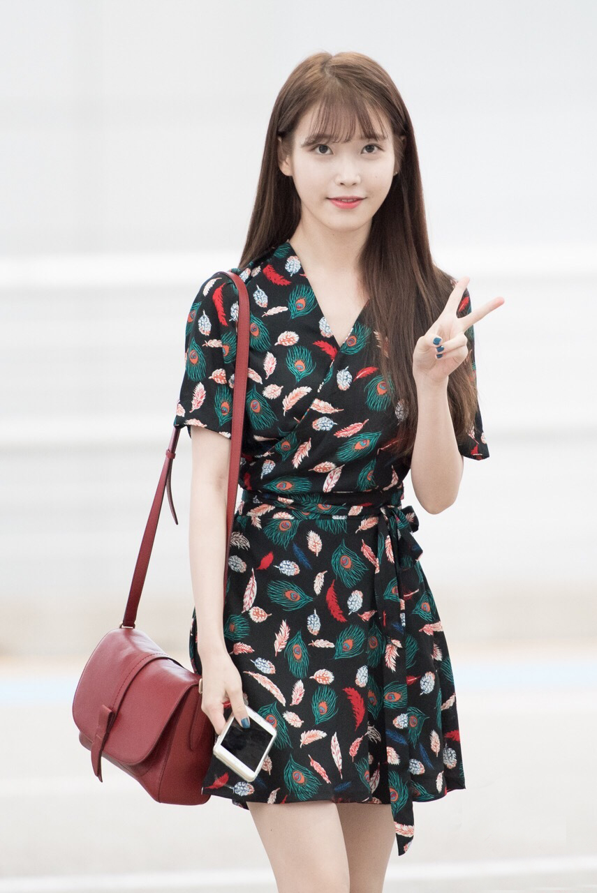 IU妹子最近也是开启了秋装模式~不但是上面说的牛仔九分裤,连裙装也升级成加长版~虽然说袖子还是短袖,但是长长的裙摆以及比较厚的面料足以抵抗初秋啦~