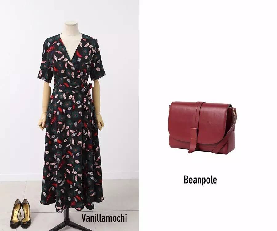 不过IU妹子却在韩国小网店买了一条200块的类似裙子,配自己代言的包包。