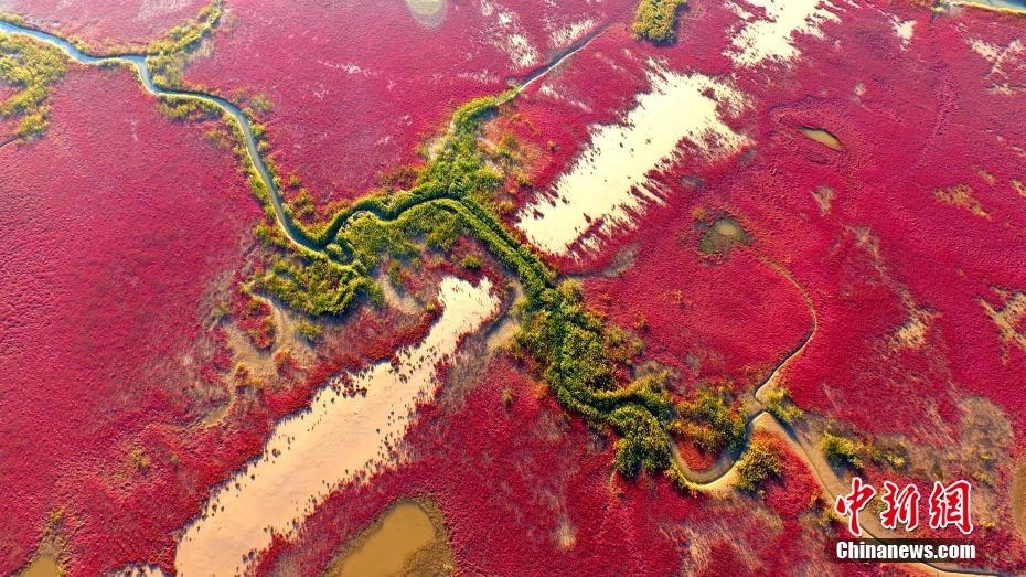 秋“黄河入海蕴奇观,百鸟翔游水云间,红毯迎宾画漫卷,芦花飞雪落九天”,是山东东营黄河入海口的生动写照。杨斌 摄