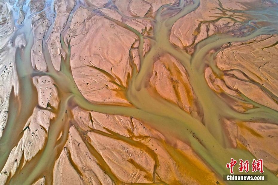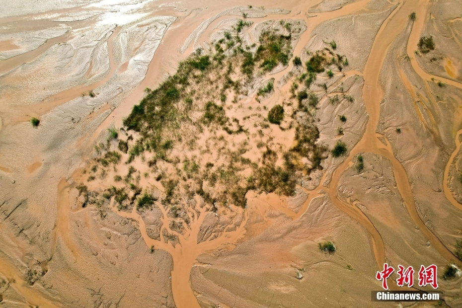 山西永济,俯瞰黄河河床如“绿树”一般,画面奇特。中新社发 宝成 摄 图片来源:CNSphoto