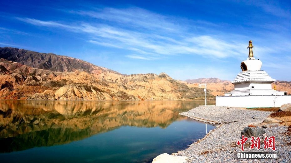 青海省黄南藏族自治州尖扎县的黄河两岸,远山、白塔、碧水构成高原绝美风景。黄河发源于青海省,青海省黄河干流出境水质持续保持优良水平。张添福 摄