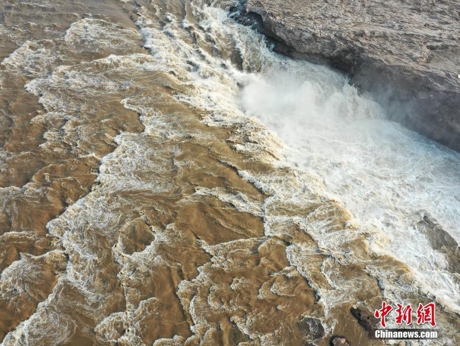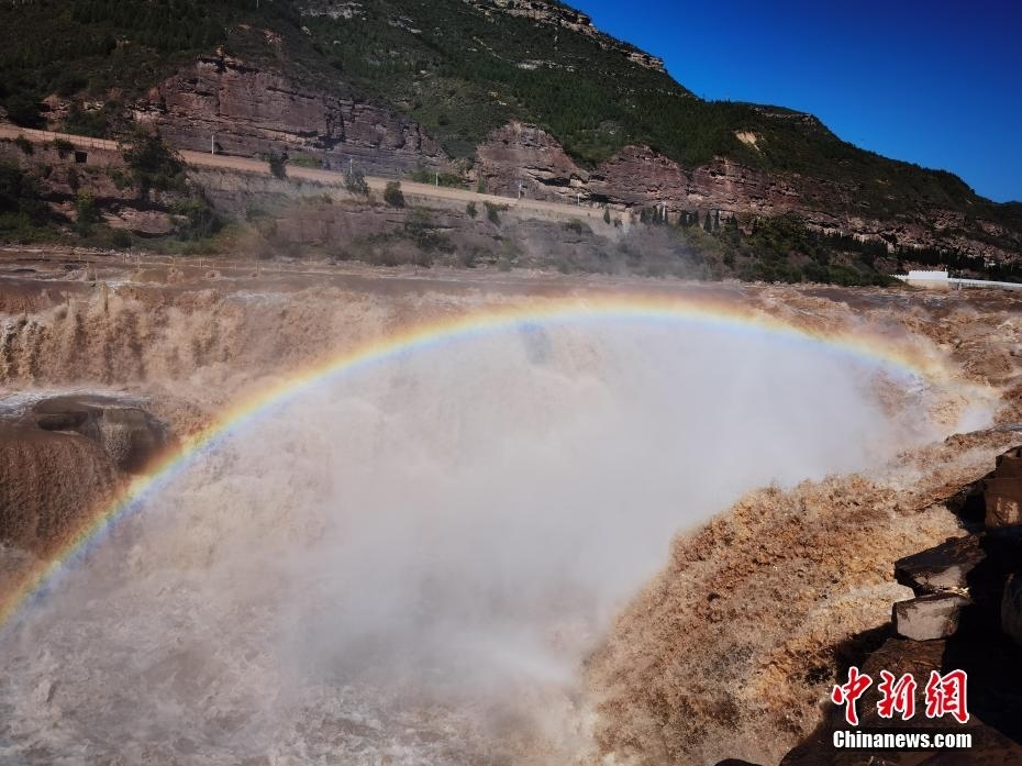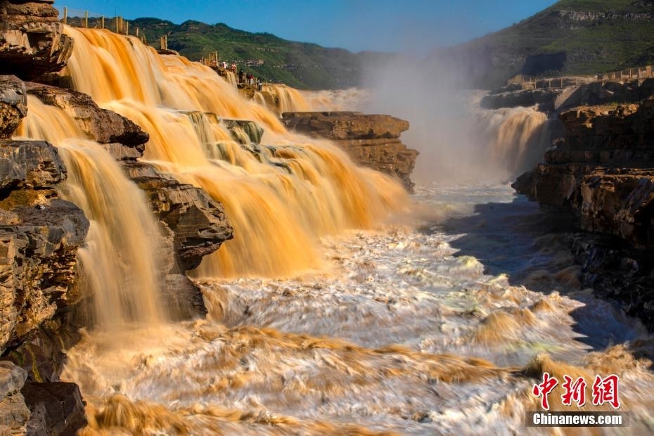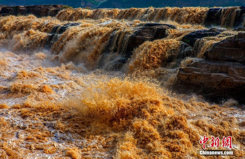 位于秦晋峡谷的黄河壶口瀑布进入秋汛最佳观赏季,河水量大增,水流携带大量泥沙奔腾而下,瀑布群连成一片,主瀑布溅起数十米的巨大水雾,涛声震耳如雷,十里龙槽“金”涛拍岸,波涛汹涌,整个瀑布呈“金黄色”。兰华 摄