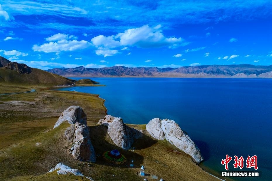 青海省果洛藏族自治州玛多县境内的三江源国家公园黄河源园区。三江源是长江、黄河、澜沧江的发源地,被誉为“中华水塔”,其中的黄河源园区面积为1.91万平方公里,区内包括了以扎陵湖-鄂陵湖、星星海为代表的高原湖泊群。图为黄河源头的鄂陵湖。 中新社记者 贾天勇 摄