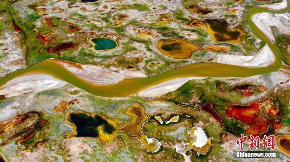 夏在黄河源头玛多县星星海,无数湖泊宛如天上繁星,呈现出奇异景色,色彩斑斓似调色板。 青海省果洛州玛多县境内星星海由大大小小难以数清的湖泊、海子、水泊所组成。近年来,玛多县通过实施湿地保护、湖泊群治理、生物多样性保护等多个项目,使黄河源头湿地面积增加104平方公里,湖泊数量由原来的4077个增加到5050个。图为夏季的星星海呈现出奇异景色。赵凛松 摄