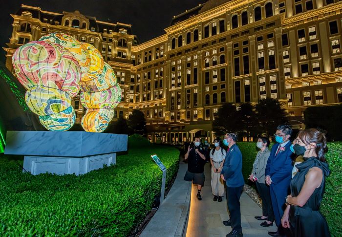近日,澳娱综合度假股份有限公司携手澳门美术协会及澳门青年美术协会同贺国庆,呈献“灯影幻彩庆团圆”灯艺展,在澳门上葡京综合度假村“绿茵胜境”花园揭开序幕。活动共展出十四位本地艺术家共同创作出的九件大型花灯艺术装置。“灯影幻彩庆团圆”将为澳门小区带来一系列精彩活动,包括灯艺展和导赏、AR互动游戏,以及花灯制作工作坊。通过不同类型的活动,展现历史悠久的花灯艺术魅力,与全澳市民及游客共迎国庆。