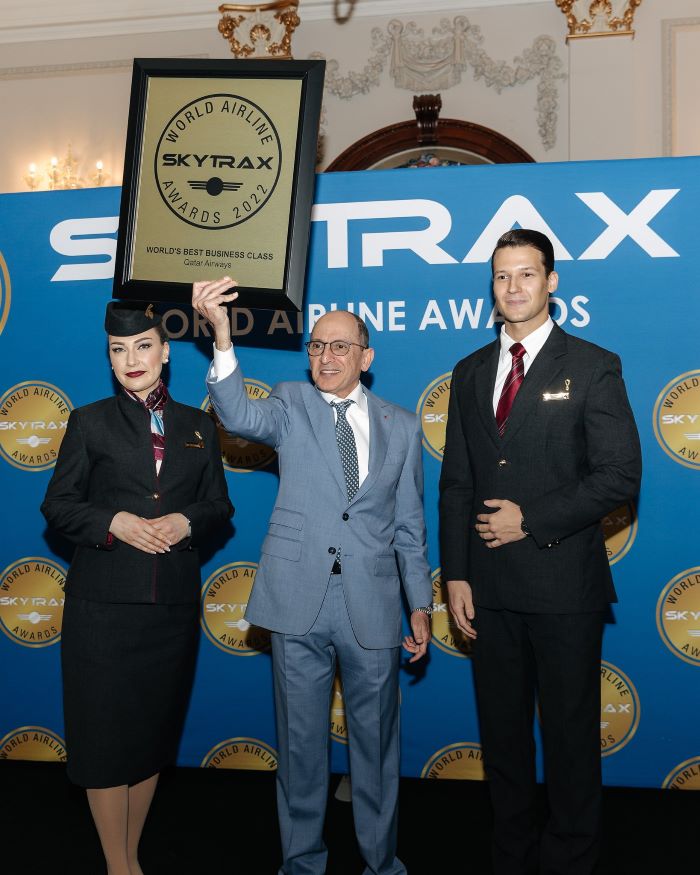 2022年,卡塔尔航空公司第七次被国际航空运输评级机构Skytrax颁发了“年度最佳航空公司”这一奖项,同时还揽获了“全球最佳商务舱”、“全球最佳商务舱休息室餐饮服务”和“中东最佳航空公司”其他三个奖项。卡塔尔航空的总部及枢纽机场多哈哈马德国际机场,近期也被Skytrax评为“2022全球最佳机场”。Skytrax世界航空大奖被誉为航空界的“奥斯卡”,以权威声誉和至高水准在航空业内备受瞩目。2021年1月,卡塔尔航空还作为全球首家航司,荣获 Skytrax颁发的防疫安全五星评级。