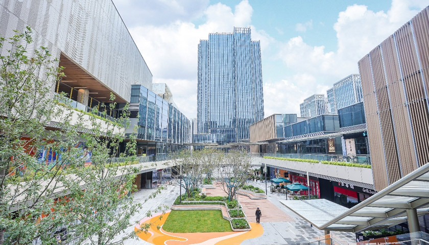 从西边的绿色低碳的室外广场——万境广场出发,行经沉浸式休闲美食空间——话题食集,来到动静结合国际休闲街区——万坊,三个特色的室内外空间连成一片,将融合自然环境的开放空间与商户和周边的办公楼形成良好互动,这里不仅是大型活动举办的场地,更将打造成为一片活力夜经济的区域。