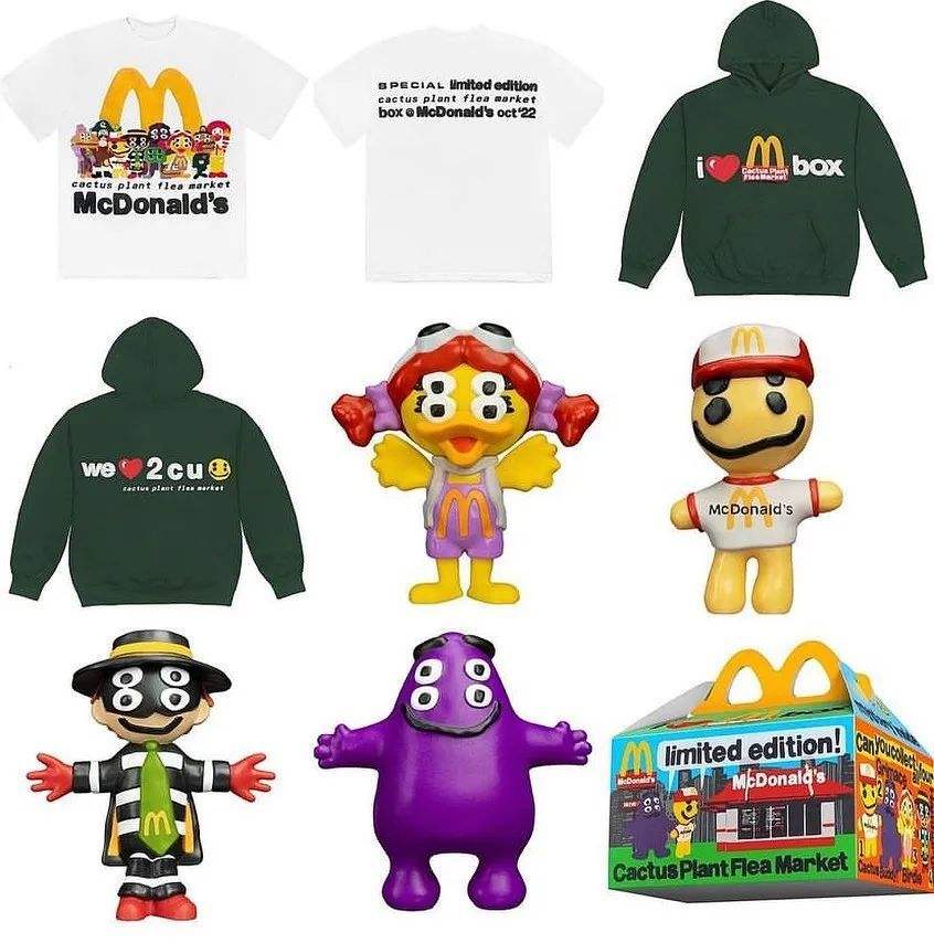 与潮牌联名似乎已成为让快餐产品快速出圈的一门诀窍。日前,麦当劳宣布与街头潮牌 Cactus Plant Flea Market(CPFM)进行限量版合作,为“大儿童们”重新设计一份快乐成人餐。